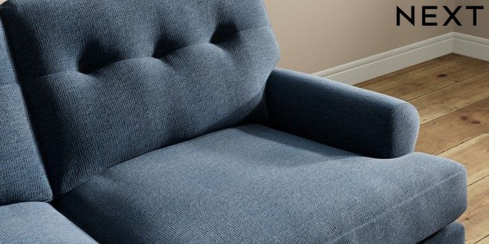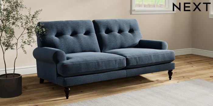 7.2.10 Erin Buttoned Back Deep Relaxed Sit 3 Seater Small Sofa Ripple Chenille Dark Blue High Classic Turned - Dark | Made Click here to use our website with more accessibility support, for example screen readers