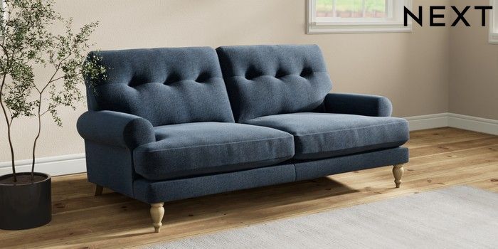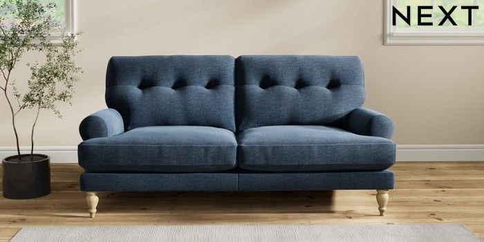 7.2.10 Erin Buttoned Back Deep Relaxed Sit 3 Seater Small Sofa Ripple Chenille Dark Blue High Classic Turned - Light | Made Click here to use our website with more accessibility support, for example screen readers
