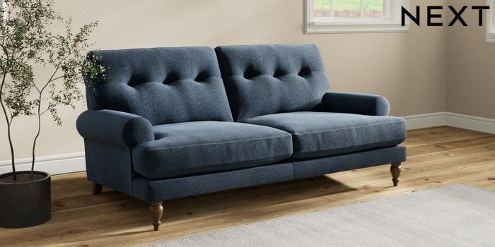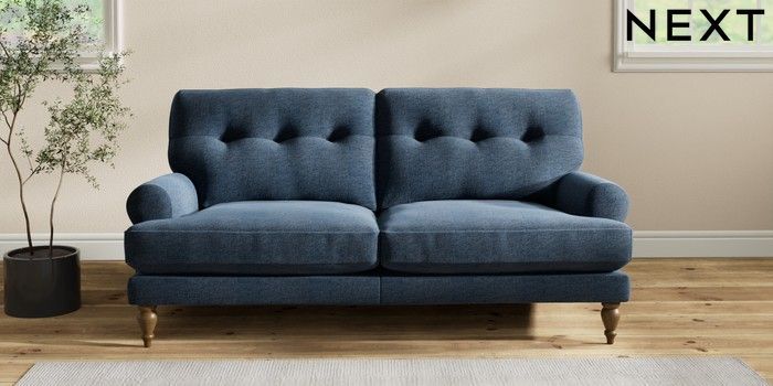 7.2.10 Erin Buttoned Back Deep Relaxed Sit 3 Seater Small Sofa Ripple Chenille Dark Blue High Classic Turned - Mid | Made Click here to use our website with more accessibility support, for example screen readers