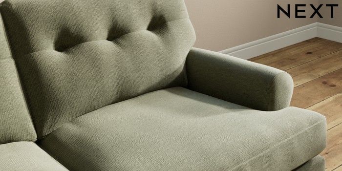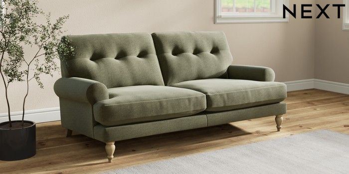 7.2.10 Erin Buttoned Back Deep Relaxed Sit 3 Seater Small Sofa Ripple Chenille Mid Moss Green High Classic Turned - Light | Made Click here to use our website with more accessibility support, for example screen readers