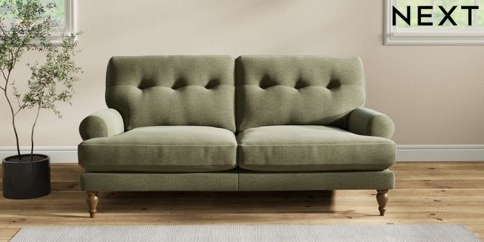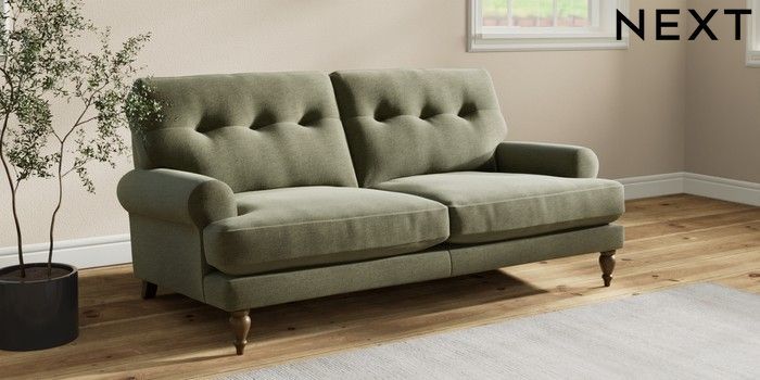 7.2.10 Erin Buttoned Back Deep Relaxed Sit 3 Seater Small Sofa Ripple Chenille Mid Moss Green High Classic Turned - Mid | Made Click here to use our website with more accessibility support, for example screen readers