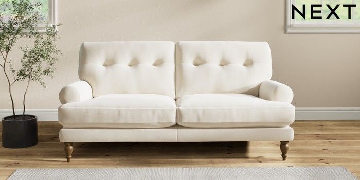 7.2.10 Erin Buttoned Back Deep Relaxed Sit 3 Seater Small Sofa Ripple Chenille Oyster High Classic Turned - Mid | Made Click here to use our website with more accessibility support, for example screen readers