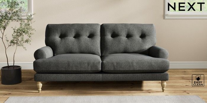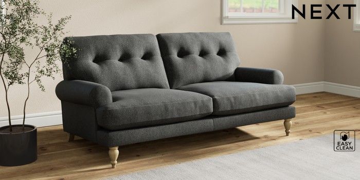 7.2.10 Erin Buttoned Back Deep Relaxed Sit 3 Seater Small Sofa Tweedy Blend Easy Clean Charcoal Grey High Classic Turned - Light | Made Click here to use our website with more accessibility support, for example screen readers