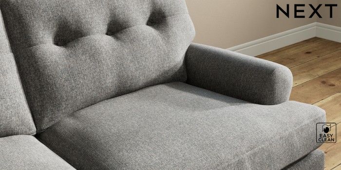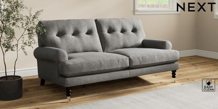7.2.10 Erin Buttoned Back Deep Relaxed Sit 3 Seater Small Sofa Tweedy Blend Easy Clean Dark Grey High Classic Turned Chrome Castor - Dark | Made Click here to use our website with more accessibility support, for example screen readers