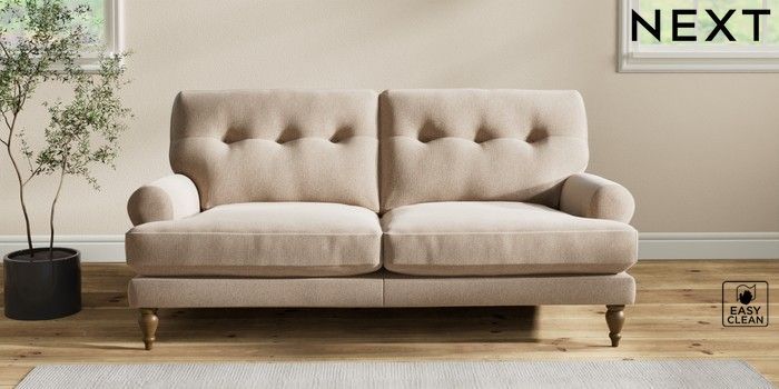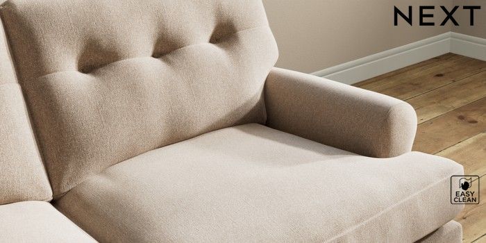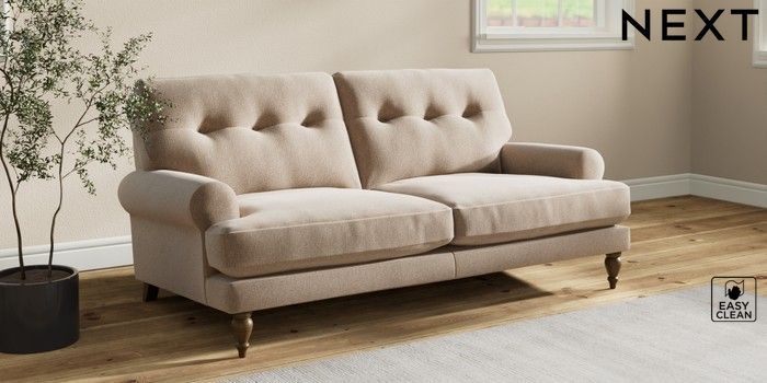 7.2.10 Erin Buttoned Back Deep Relaxed Sit 3 Seater Small Sofa Tweedy Blend Easy Clean Light Dove Natural High Classic Turned - Mid | Made Click here to use our website with more accessibility support, for example screen readers