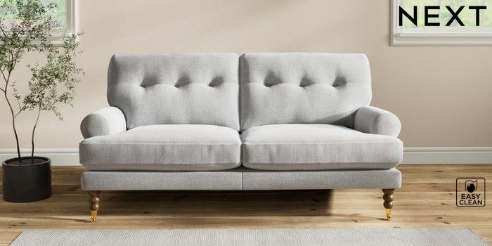 Add charm to your living space with the Erin Button Back Sofa. Its elegant scroll arms and classic button-back cushions create a timeless look. You'll love its "Relaxed Sit" cushions, specially designed for ultimate comfort. These cushions are made with clever foam and fibre, giving you a wonderfully soft, plump feel. To keep them looking their best, simply plump and turn them regularly. Plus, you can make the Erin your own by choosing from a huge range of coloured fabrics.