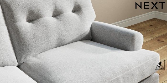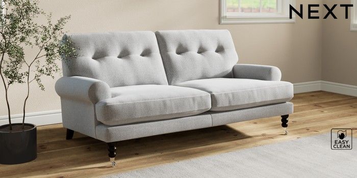 7.2.10 Erin Buttoned Back Deep Relaxed Sit 3 Seater Small Sofa Tweedy Blend Easy Clean Light Silver Grey High Classic Turned Chrome Castor - Dark | Made Click here to use our website with more accessibility support, for example screen readers