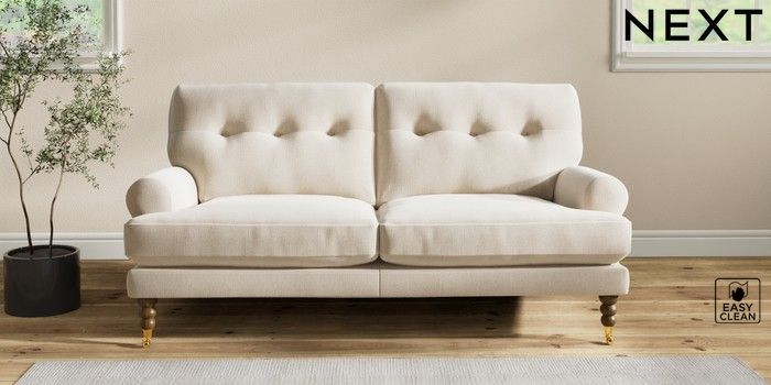 Add charm to your living space with the Erin Button Back Sofa. Its elegant scroll arms and classic button-back cushions create a timeless look. You'll love its "Relaxed Sit" cushions, specially designed for ultimate comfort. These cushions are made with clever foam and fibre, giving you a wonderfully soft, plump feel. To keep them looking their best, simply plump and turn them regularly. Plus, you can make the Erin your own by choosing from a huge range of coloured fabrics.