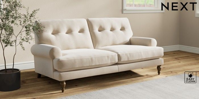 7.2.10 Erin Buttoned Back Deep Relaxed Sit 3 Seater Small Sofa Tweedy Blend Easy Clean Oyster High Classic Turned - Mid | Made Click here to use our website with more accessibility support, for example screen readers