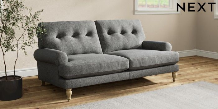 Add charm to your living space with the Erin Button Back Sofa. Its elegant scroll arms and classic button-back cushions create a timeless look. You'll love its "Relaxed Sit" cushions, specially designed for ultimate comfort. These cushions are made with clever foam and fibre, giving you a wonderfully soft, plump feel. To keep them looking their best, simply plump and turn them regularly. Plus, you can make the Erin your own by choosing from a huge range of coloured fabrics.