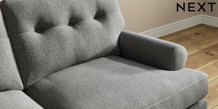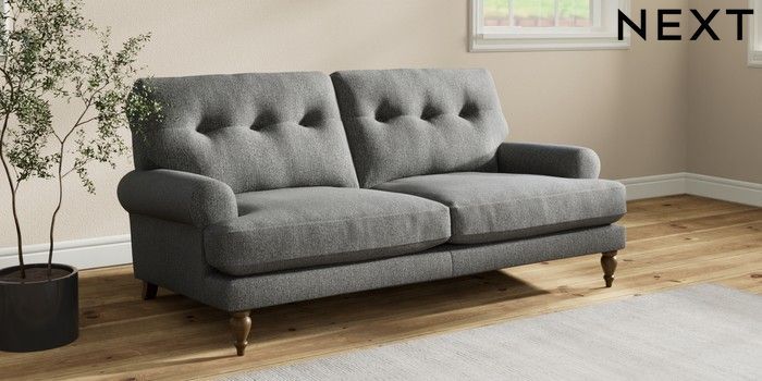 7.2.10 Erin Buttoned Back Deep Relaxed Sit 3 Seater Small Sofa Tweedy Chenille Dark Grey High Classic Turned - Mid | Made Click here to use our website with more accessibility support, for example screen readers