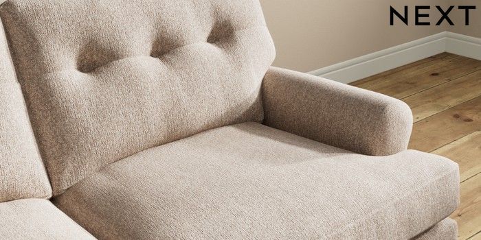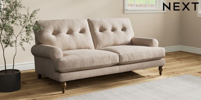 7.2.10 Erin Buttoned Back Deep Relaxed Sit 3 Seater Small Sofa Tweedy Chenille Mid Natural High Classic Turned - Mid | Made Click here to use our website with more accessibility support, for example screen readers