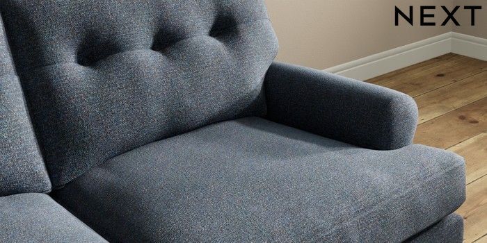 7.2.10 Erin Buttoned Back Deep Relaxed Sit 3 Seater Small Sofa Tweedy Chenille Navy Blue High Classic Turned Chrome Castor - Light | Made Click here to use our website with more accessibility support, for example screen readers