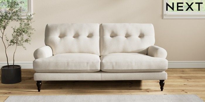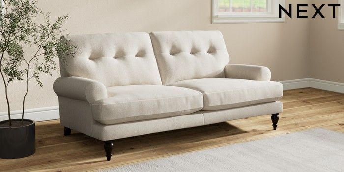 Add charm to your living space with the Erin Button Back Sofa. Its elegant scroll arms and classic button-back cushions create a timeless look. You'll love its "Relaxed Sit" cushions, specially designed for ultimate comfort. These cushions are made with clever foam and fibre, giving you a wonderfully soft, plump feel. To keep them looking their best, simply plump and turn them regularly. Plus, you can make the Erin your own by choosing from a huge range of coloured fabrics.