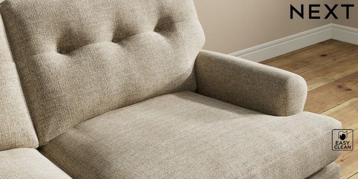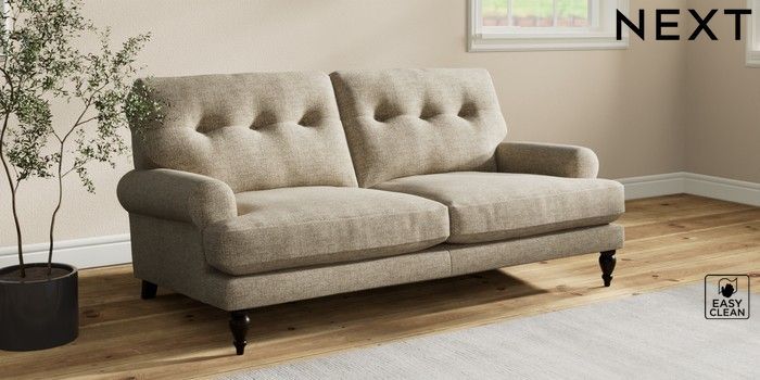7.2.10 Erin Buttoned Back Deep Relaxed Sit 3 Seater Small Sofa Woven Chenille Easy Clean Mid Natural High Classic Turned - Dark | Made Click here to use our website with more accessibility support, for example screen readers