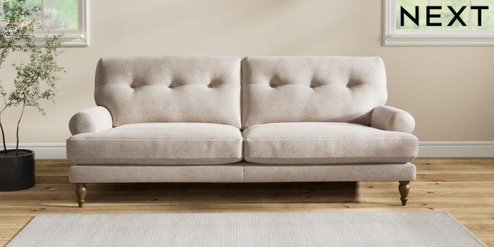 7.2.10 Erin Buttoned Back Deep Relaxed Sit 3 Seater Sofa Boucle Chenille Light Natural High Classic Turned - Mid | Made Click here to use our website with more accessibility support, for example screen readers
