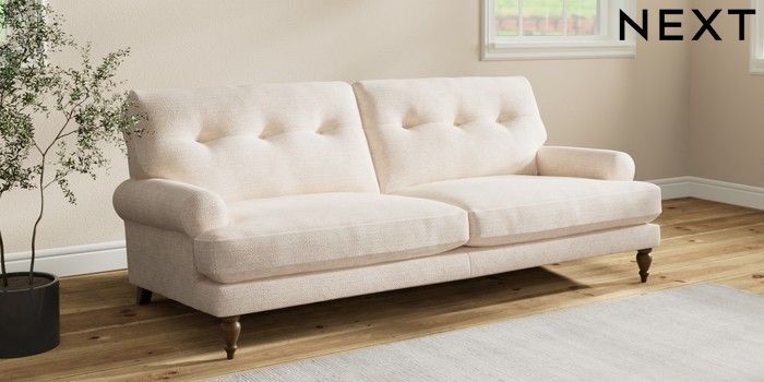 7.2.10 Erin Buttoned Back Deep Relaxed Sit 3 Seater Sofa Boucle Chenille Oyster High Classic Turned - Mid | Made Click here to use our website with more accessibility support, for example screen readers