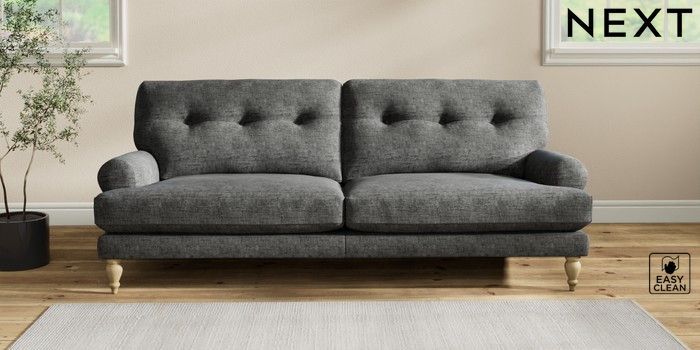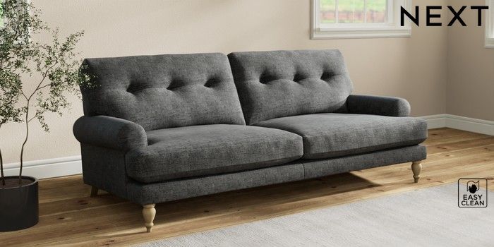 7.2.10 Erin Buttoned Back Deep Relaxed Sit 3 Seater Sofa Boucle Weave Easy Clean Charcoal Grey High Classic Turned - Light | Made Click here to use our website with more accessibility support, for example screen readers
