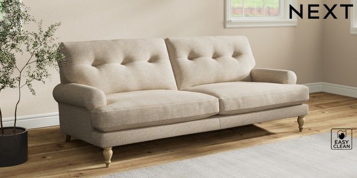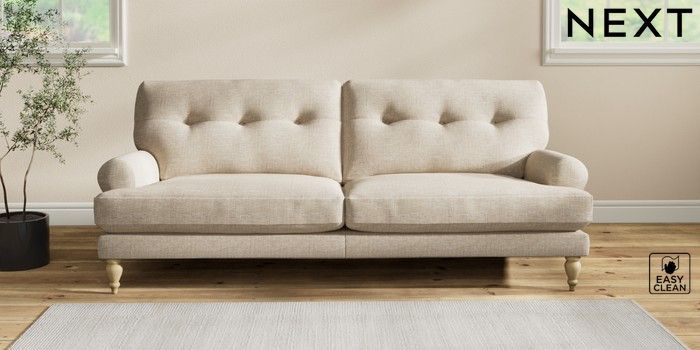 7.2.10 Erin Buttoned Back Deep Relaxed Sit 3 Seater Sofa Boucle Weave Easy Clean Dark Natural High Classic Turned - Light | Made Click here to use our website with more accessibility support, for example screen readers