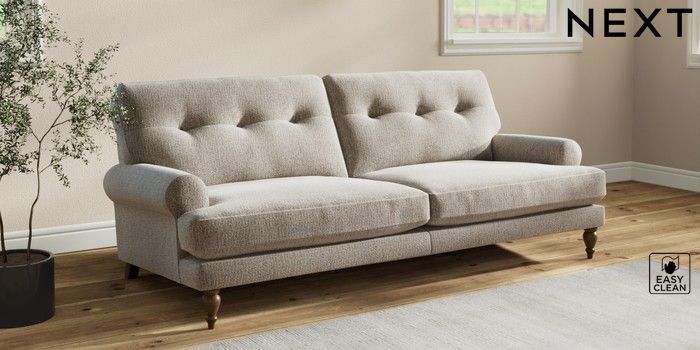 7.2.10 Erin Buttoned Back Deep Relaxed Sit 3 Seater Sofa Chunky Boucle Easy Clean Dove High Classic Turned - Mid | Made Click here to use our website with more accessibility support, for example screen readers