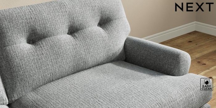 7.2.10 Erin Buttoned Back Deep Relaxed Sit 3 Seater Sofa Chunky Boucle Easy Clean Mid Grey High Classic Turned Brass Castor - Light | Made Click here to use our website with more accessibility support, for example screen readers