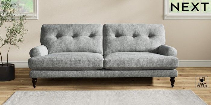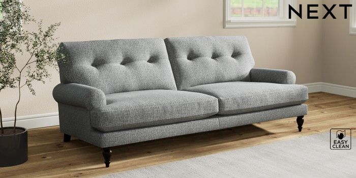 7.2.10 Erin Buttoned Back Deep Relaxed Sit 3 Seater Sofa Chunky Boucle Easy Clean Mid Grey High Classic Turned - Dark | Made Click here to use our website with more accessibility support, for example screen readers