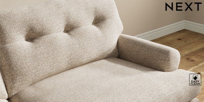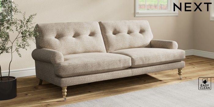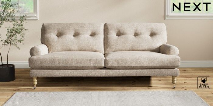 7.2.10 Erin Buttoned Back Deep Relaxed Sit 3 Seater Sofa Chunky Boucle Easy Clean Mid Natural High Classic Turned Chrome Castor - Light | Made Click here to use our website with more accessibility support, for example screen readers