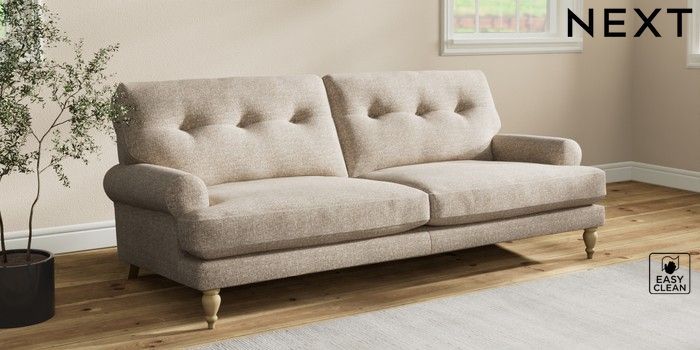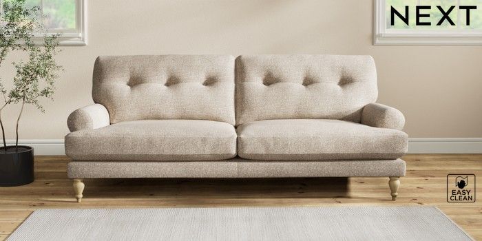 7.2.10 Erin Buttoned Back Deep Relaxed Sit 3 Seater Sofa Chunky Boucle Easy Clean Mid Natural High Classic Turned - Light | Made Click here to use our website with more accessibility support, for example screen readers
