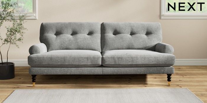 7.2.10 Erin Buttoned Back Deep Relaxed Sit 3 Seater Sofa Chunky Chenille Dark Grey High Classic Turned Brass Castor - Dark | Made Click here to use our website with more accessibility support, for example screen readers