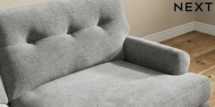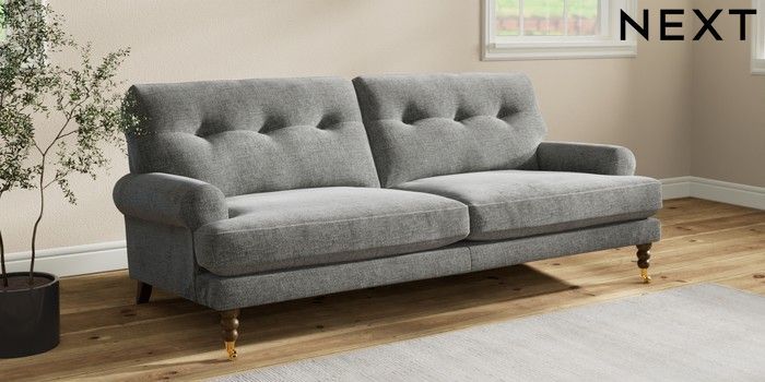 7.2.10 Erin Buttoned Back Deep Relaxed Sit 3 Seater Sofa Chunky Chenille Dark Grey High Classic Turned Brass Castor - Mid | Made Click here to use our website with more accessibility support, for example screen readers