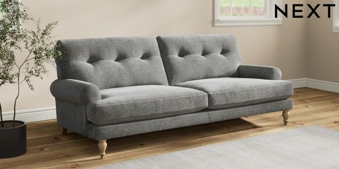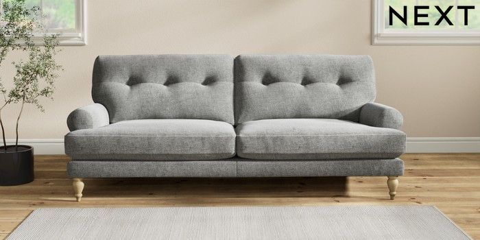 7.2.10 Erin Buttoned Back Deep Relaxed Sit 3 Seater Sofa Chunky Chenille Dark Grey High Classic Turned - Light | Made Click here to use our website with more accessibility support, for example screen readers