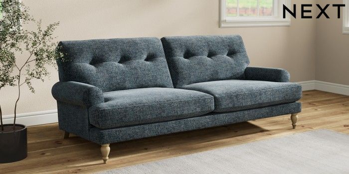 7.2.10 Erin Buttoned Back Deep Relaxed Sit 3 Seater Sofa Chunky Chenille Dark Navy Blue High Classic Turned - Light | Made Click here to use our website with more accessibility support, for example screen readers