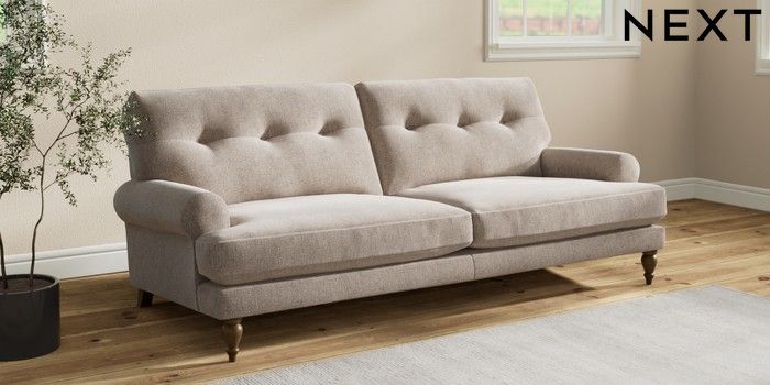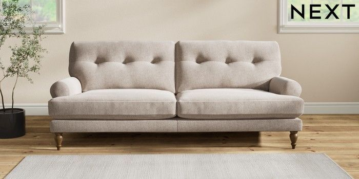 7.2.10 Erin Buttoned Back Deep Relaxed Sit 3 Seater Sofa Chunky Chenille Light Dove High Classic Turned - Mid | Made Click here to use our website with more accessibility support, for example screen readers