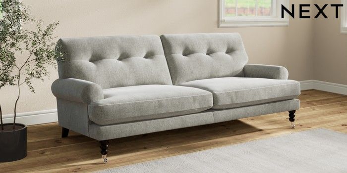 7.2.10 Erin Buttoned Back Deep Relaxed Sit 3 Seater Sofa Chunky Chenille Light Grey High Classic Turned Chrome Castor - Dark | Made Click here to use our website with more accessibility support, for example screen readers