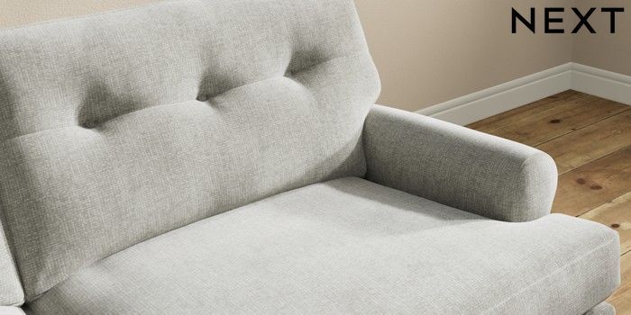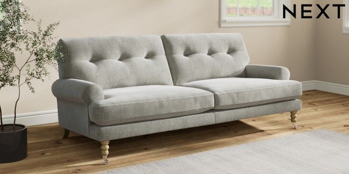 7.2.10 Erin Buttoned Back Deep Relaxed Sit 3 Seater Sofa Chunky Chenille Light Grey High Classic Turned Chrome Castor - Light | Made Click here to use our website with more accessibility support, for example screen readers