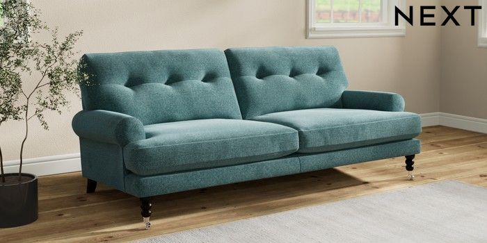 Add charm to your living space with the Erin Button Back Sofa. Its elegant scroll arms and classic button-back cushions create a timeless look. You'll love its "Relaxed Sit" cushions, specially designed for ultimate comfort. These cushions are made with clever foam and fibre, giving you a wonderfully soft, plump feel. To keep them looking their best, simply plump and turn them regularly. Plus, you can make the Erin your own by choosing from a huge range of coloured fabrics.