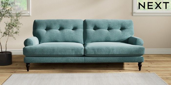 7.2.10 Erin Buttoned Back Deep Relaxed Sit 3 Seater Sofa Chunky Chenille Mid Teal Green High Classic Turned - Dark | Made Click here to use our website with more accessibility support, for example screen readers