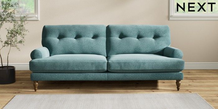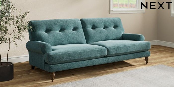 7.2.10 Erin Buttoned Back Deep Relaxed Sit 3 Seater Sofa Chunky Chenille Mid Teal Green High Classic Turned - Mid | Made Click here to use our website with more accessibility support, for example screen readers