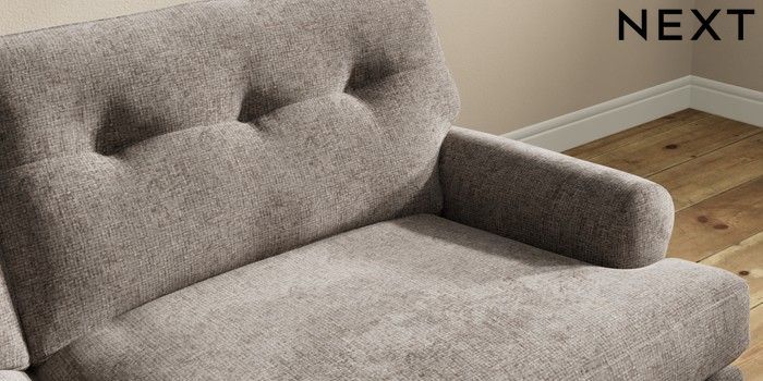 7.2.10 Erin Buttoned Back Deep Relaxed Sit 3 Seater Sofa Chunky Chenille Mink Brown High Classic Turned Brass Castor - Light | Made Click here to use our website with more accessibility support, for example screen readers