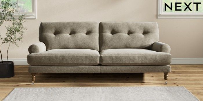 7.2.10 Erin Buttoned Back Deep Relaxed Sit 3 Seater Sofa Chunky Marl Light Olive Green High Classic Turned Chrome Castor - Mid | Made Click here to use our website with more accessibility support, for example screen readers