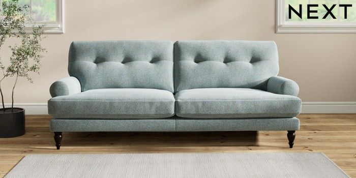 7.2.10 Erin Buttoned Back Deep Relaxed Sit 3 Seater Sofa Chunky Marl Mid Blue High Classic Turned - Dark | Made Click here to use our website with more accessibility support, for example screen readers