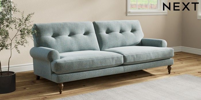 Add charm to your living space with the Erin Button Back Sofa. Its elegant scroll arms and classic button-back cushions create a timeless look. You'll love its "Relaxed Sit" cushions, specially designed for ultimate comfort. These cushions are made with clever foam and fibre, giving you a wonderfully soft, plump feel. To keep them looking their best, simply plump and turn them regularly. Plus, you can make the Erin your own by choosing from a huge range of coloured fabrics.
