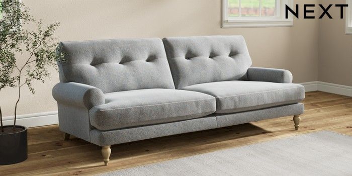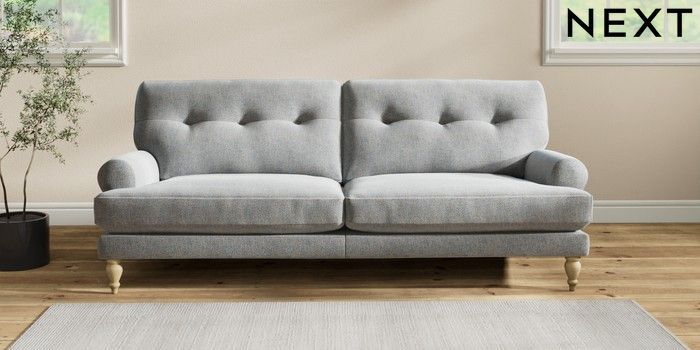7.2.10 Erin Buttoned Back Deep Relaxed Sit 3 Seater Sofa Chunky Marl Mid Grey High Classic Turned - Light | Made Click here to use our website with more accessibility support, for example screen readers