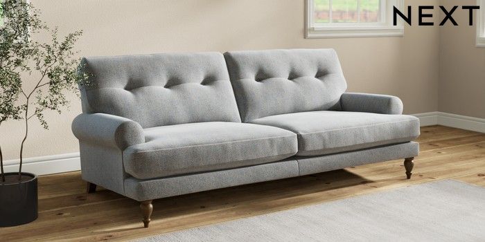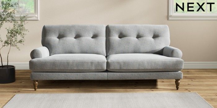 7.2.10 Erin Buttoned Back Deep Relaxed Sit 3 Seater Sofa Chunky Marl Mid Grey High Classic Turned - Mid | Made Click here to use our website with more accessibility support, for example screen readers