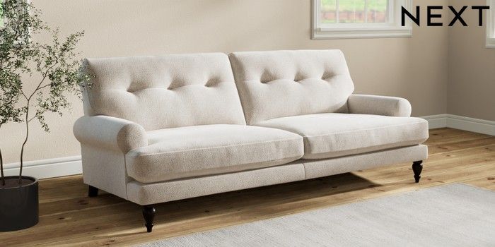7.2.10 Erin Buttoned Back Deep Relaxed Sit 3 Seater Sofa Chunky Marl Oyster High Classic Turned - Dark | Made Click here to use our website with more accessibility support, for example screen readers