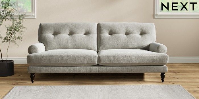 7.2.10 Erin Buttoned Back Deep Relaxed Sit 3 Seater Sofa Chunky Texture Dove High Classic Turned - Dark | Made Click here to use our website with more accessibility support, for example screen readers