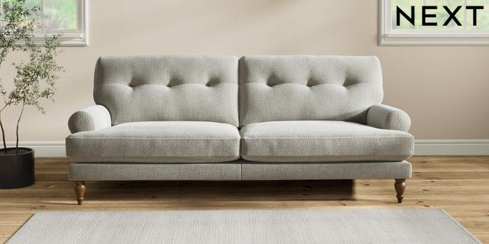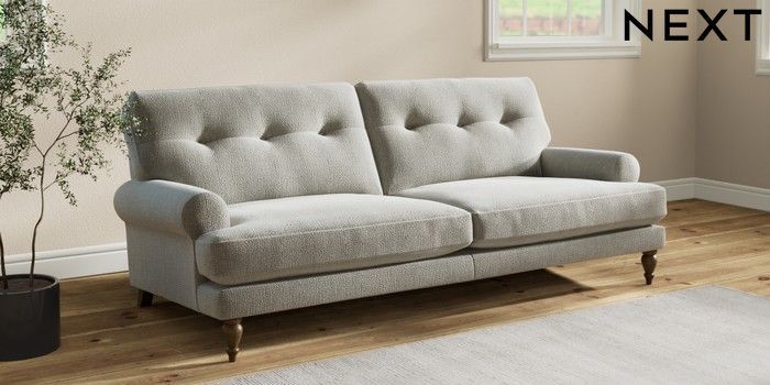 7.2.10 Erin Buttoned Back Deep Relaxed Sit 3 Seater Sofa Chunky Texture Dove High Classic Turned - Mid | Made Click here to use our website with more accessibility support, for example screen readers