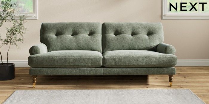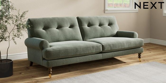 7.2.10 Erin Buttoned Back Deep Relaxed Sit 3 Seater Sofa Chunky Texture Mid Forest Green High Classic Turned Brass Castor - Mid | Made Click here to use our website with more accessibility support, for example screen readers