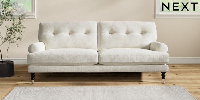 7.2.10 Erin Buttoned Back Deep Relaxed Sit 3 Seater Sofa Chunky Texture Oyster High Classic Turned Chrome Castor - Dark | Made Click here to use our website with more accessibility support, for example screen readers
