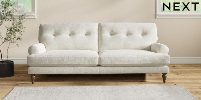 7.2.10 Erin Buttoned Back Deep Relaxed Sit 3 Seater Sofa Chunky Texture Oyster High Classic Turned - Mid | Made Click here to use our website with more accessibility support, for example screen readers